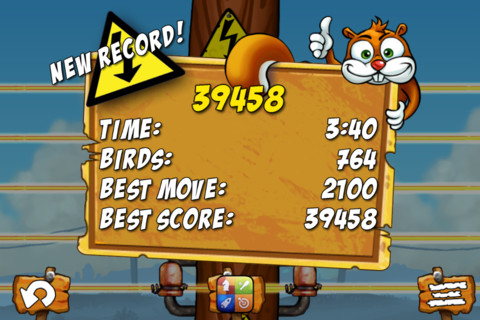 另一种是限时模式,在规定时间内能电死多少算多少。不过和竞速模式不同的是,会出现各种特殊的傻鸟,在不断的电死傻鸟之后,也会出现加速模式,会在右上角显示,X1 X2 X3 X4的速度。同时会增加电线的数量。 从最少的3条电线增加到4条,5条。最后一种模式是无限模式。不怕手抽筋你可以尽情的玩,电到你满意为止。