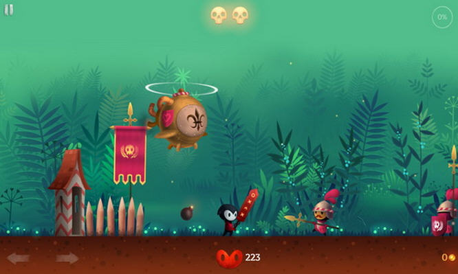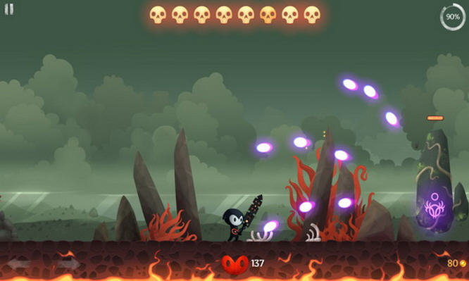 一款横版的动作冒险游戏,画面非常精致,音效也非常丰富。此外动作技能很多,例如向右滑动是冲刺,向下滑动是斩断,单击跳跃后再向下滑动是跳起来向下斩,等等,这些操作在游戏一开始时候会有说明。而且在刺杀敌人后会弹出许多金币,非常华丽的感觉。