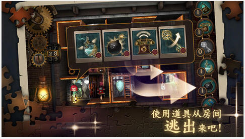 3、利用可瞬间移动的电话、可切换房间的衣柜、可拉动房间的磁铁等丰富的道具破解拼图 ;