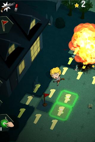 话说回来作为一个能独自出现在雷区,又能面对奇葩的僵尸不尿裤子的勇猛的女主角,怎么会只想逃避僵尸呢?游戏中当然还有能杀死僵尸的道具,什么炸弹啊,机关枪啊..只要女主角拿到了这些武器..嘿嘿,你懂的!有趣的是,像小编这么喜欢探索科学的人肯定会想一些奇葩的设定,比如引僵尸到已知的但没有标记的地雷上(说了标记后只要能动的都不会走上去了,不科学!)...事实证明这是一款比较科学的游戏!僵尸是能被这样炸死的!而且爆炸后会自动标记那个地雷!简直...简直闲的蛋疼。