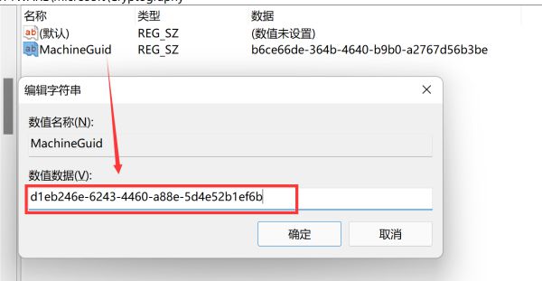 将密码库的 machineGUID 修改为 d1eb246e-6243-4460-a88e-5d4e52b1ef6b
