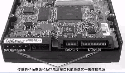??在连接SATA硬盘时要注意:有些SATA硬盘一般都具备传统的4针电源接口及SATA电源接口,在使用时可以任意选择其中一个接口来连接电源,但是绝对不要将这两个接口都接上电源插头,否则会烧毁硬盘的。