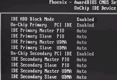 ??将所有硬盘及光驱的数据线按上述方法连接好之后,再连接好设备的电源线。接下来启动电脑进入BIOS,选择并进入“Integrated Peripherals”设置窗口,然后进入“OnChip IDE Device”设置画面。在该画面中,除了将“IDE HDD Block Mode”、“On-Chip Primary PCI IDE”、“On-Chip Secondary PCI IDE”三个选项设置为“Enabled”外,其他8个选项全部设置为“Auto” 。